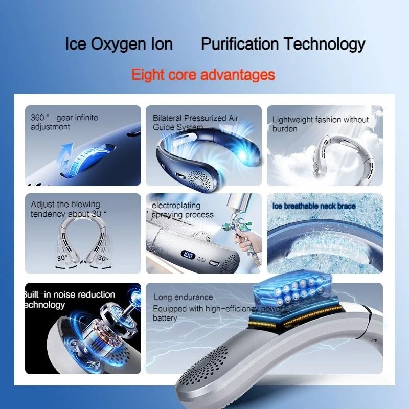 JKUOO Portable Neck Fan, Hands Free Personal Fan, 360? Airflow,3-16 Running Hours,4000mAh Battery USB Rechargeable,
