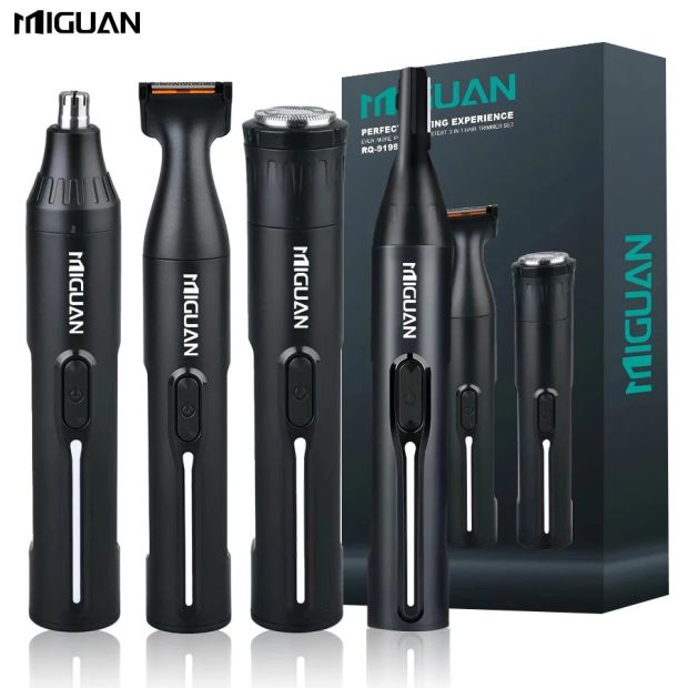 4-in-1 Professional Grooming Kit, USB Rechargeable Nose & Ear Hair Trimmer, Beard and Eyebrow Razor, Men'S Personal Care Tools