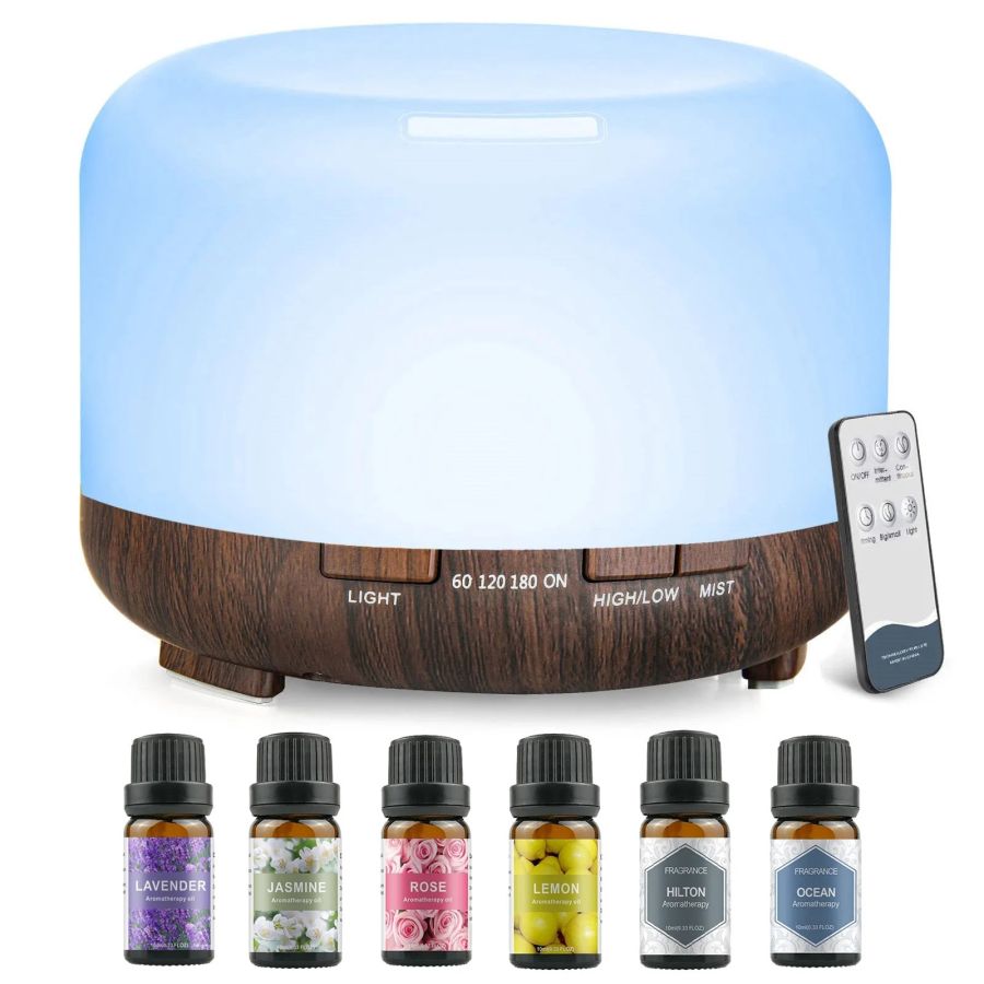 500ML Aroma Diffuser (Oils Optional), 5V 2A Essential Oil Aromatherapy Diffuser Humidifier with Remote Control for Home Office