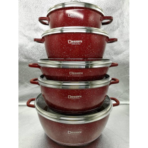 The revolutionary speckled nonstick coating boasts quick release for effortless cooking. Appealing to the eye, this ultra durable coating has a heart of stone—it is fork-proof, metal-safe and extremely scratch-resistant, increasing the lifespan of your pan. The easy-to-clean surface ensures that no time is wasted on washing and more time can be spent on cooking. Made from the most pure aluminium in the industry, the cooking Pots die-casted body heats up rapidly and evenly with no hot spots. Three times more energy efficient than cast iron, aluminum is also wonderfully light, eliminating any arm strain. The ergonomic, two handle offers a comfortable grip for maximum control. With Dessini, experience the ease of nonstick expertise. Features & details Set Includes 32 cm, 28 cm, 24 cm, 20, cm Casserole and 28 cm Shallow Casserole PFOA-free nonstick coating offers quick release and superior browning requiring less oil for healthier cooking Die-Casted aluminum body ensures efficient heating spread uniformly across the entire pan’s surface There are a variety of colors to choose from, easy to use. A multi-purpose pot, enjoy baking time, you can make a variety of food. HEALTHY & EASY TO CLEAN : Nonstick Natural Granite Stone Layered Ceramic Coating. Superior Nonstick properties don’t require heavy cooking oil use. Ceramic Coating is stain and scratch resistant.