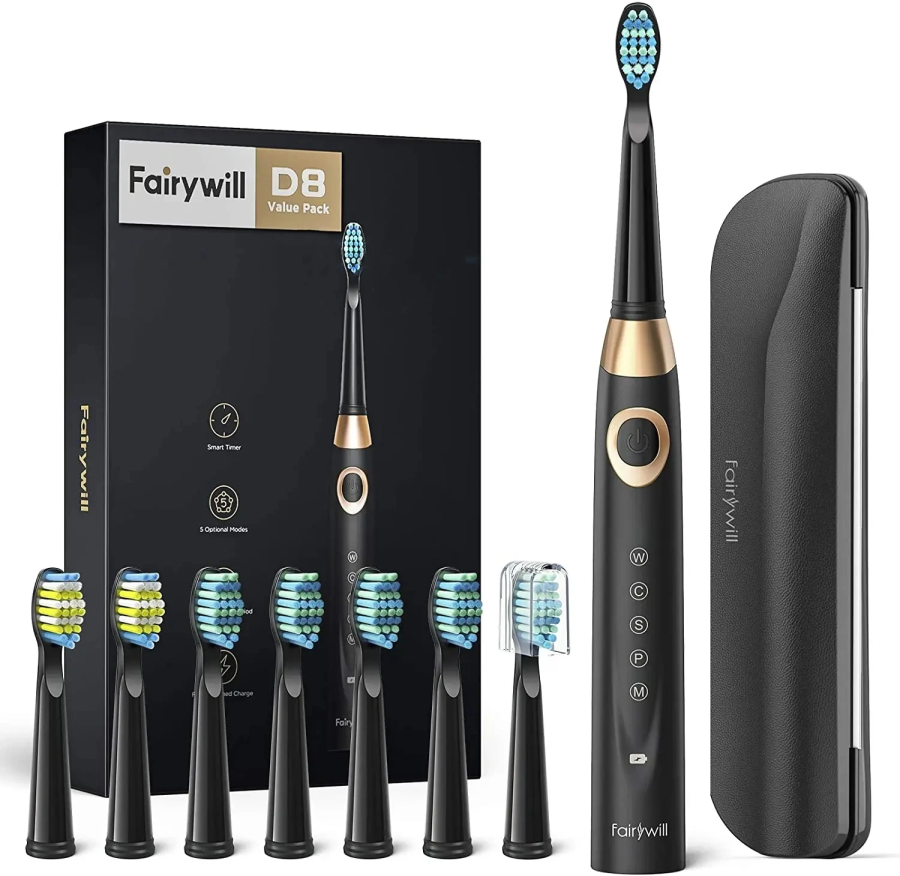 Fairywill Electric Toothbrushes for Adults Kids 5 Modes Smart Timer Rechargeable Whitening Sonic Toothbrush with 10 Brush Heads