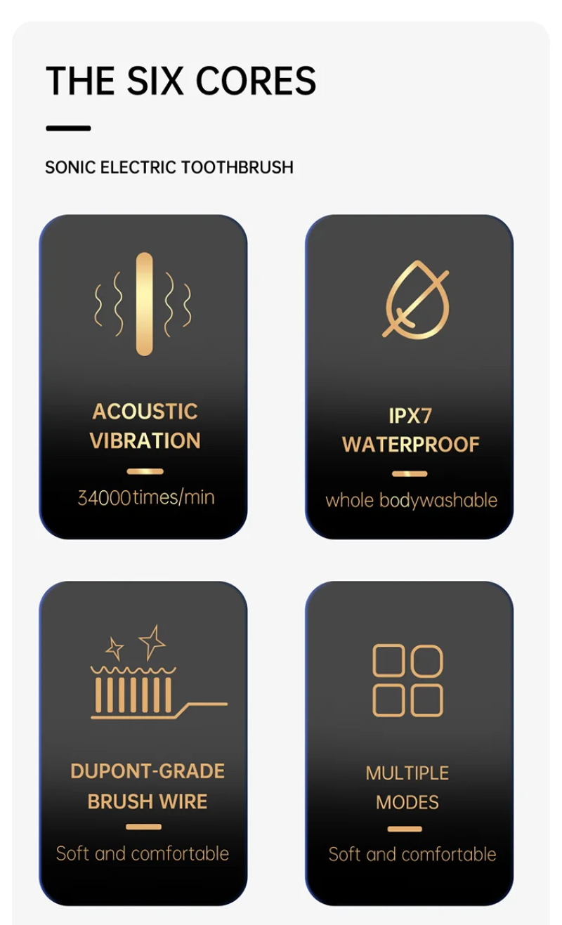 Jian Brand Adult Black and White Classic Sonic Toothbrush Adult 5-Speed Mode USB Charging Ipx7 Waterproof Sonic Electric Toothbr