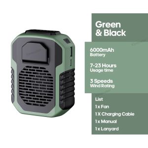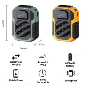 Kinscoter 6000mAh Hanging Neck/Waist Fan USB Mini Portable Rechargeable Fan For Outdoor Camping Hiking Climbing Running Sports