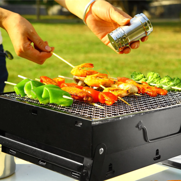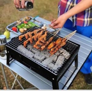 This compact and portable charcoal grill is perfect for outdoor cooking, camping, or backyard barbecues. It features a sturdy construction, easy assembly, and a convenient carrying handle.