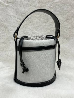 A stylish bucket bag crafted with durable canvas and genuine leather trim, perfect for everyday elegance.