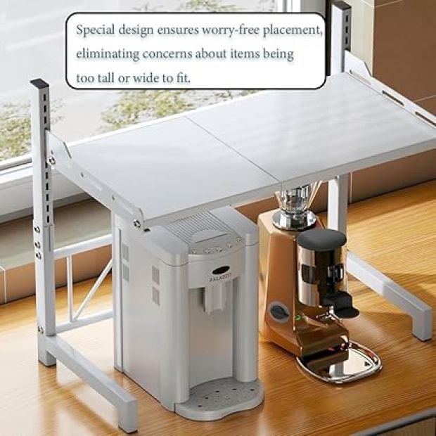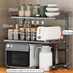 This versatile kitchen shelf organizer is perfect for maximizing your counter space and keeping your kitchen clutter-free. With its sturdy metal frame and multiple tiers, you can easily store your appliances, spices, and other kitchen essentials.
