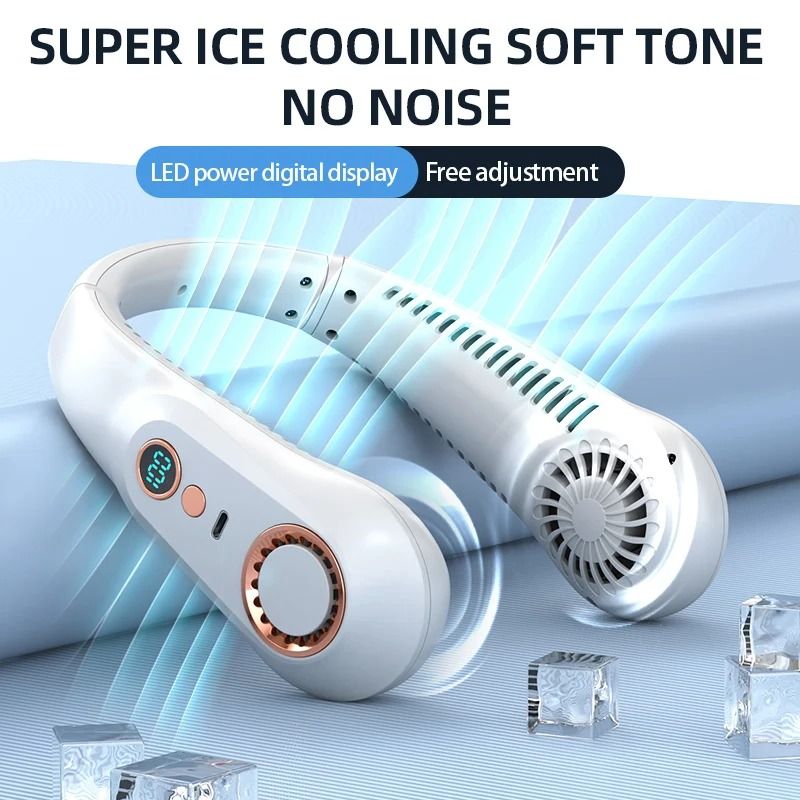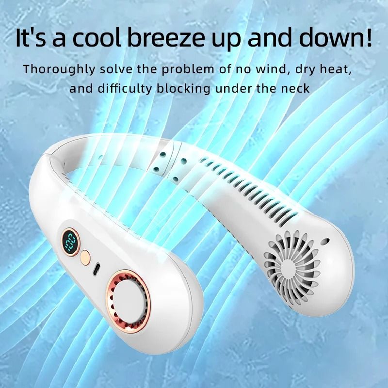 New 3000mAh Hanging Neck Fan Portable Bladeless Mini USB Rechargeable Mute LED Digital Display Electric Fan Summer Air Cooler