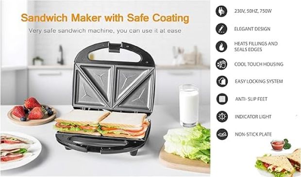 This compact and efficient sandwich maker is perfect for a quick and delicious meal. With its non-stick cooking plates, you can easily make crispy and golden brown sandwiches, toasties, and paninis. The easy-to-clean design and convenient cord storage make it a great addition to any kitchen. Features: