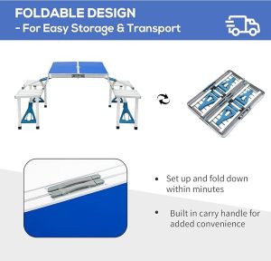 Outsunny Picnic Table Junior Folding Camping Table Set Portable Camping Garden BBQ Party, Blue