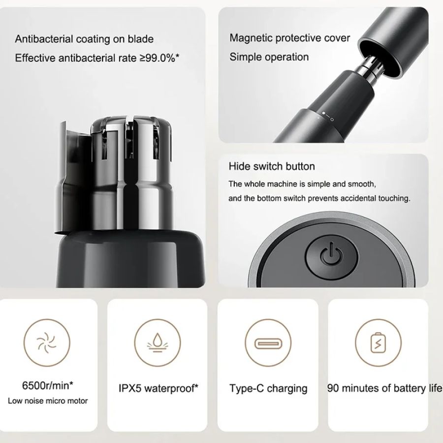 XIAOMI Mijia Electric Nose Hair Trimmer Portable Nose Ears Hair Eyebrow Trimmer for Men Rechargeable Painless Clipper