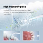 High-frequency pulse and ultra-fine water flow can accurately clean teeth' gaps and dead corners, easily remove bacteria and food residues, and make your mouth comfortable and clean.